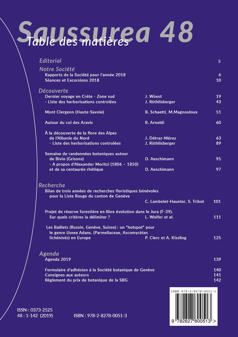 • Les Baillets (Russin, Genève, Suisse) : un « hotspot » pour le genre Usnea Adans. (Parmeliaceae, Ascomycètes lichénisés) en Europe,